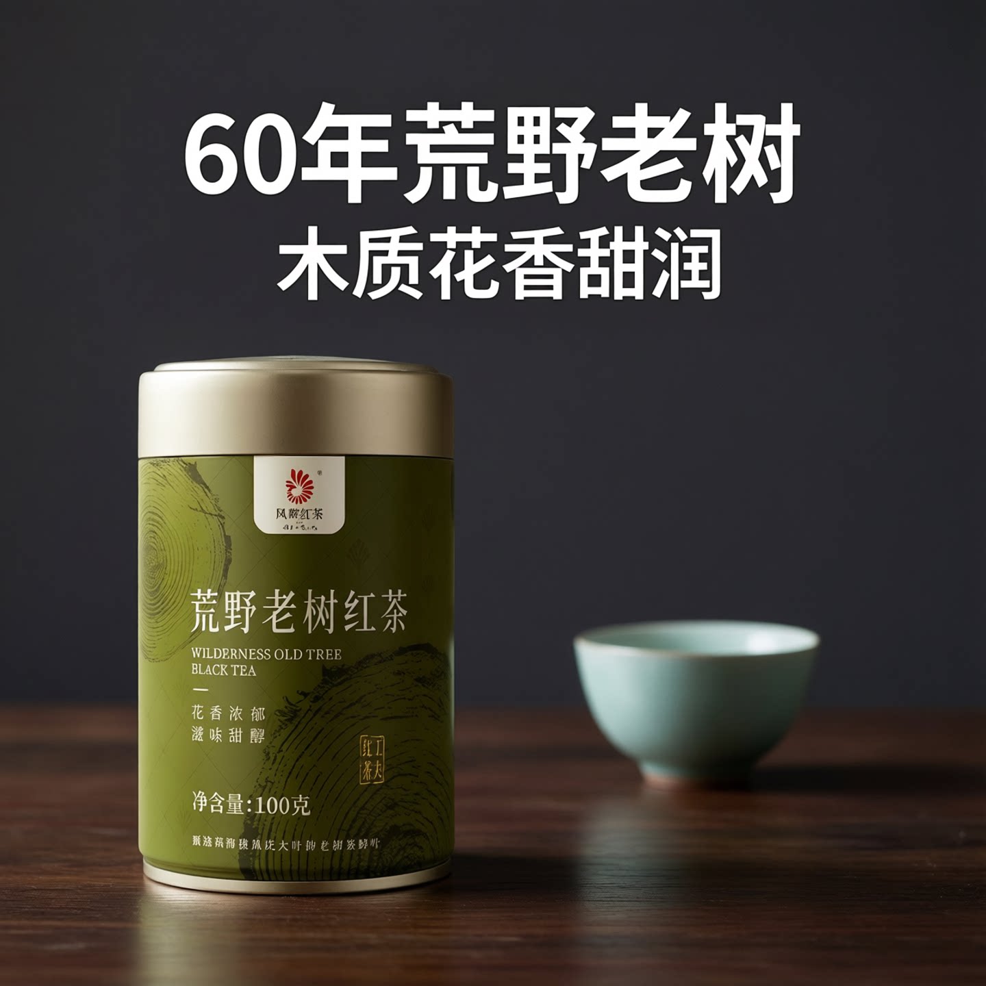 云南滇红工夫茶叶 凤牌荒野老树 特级高山野生古树茶100g花香浓香