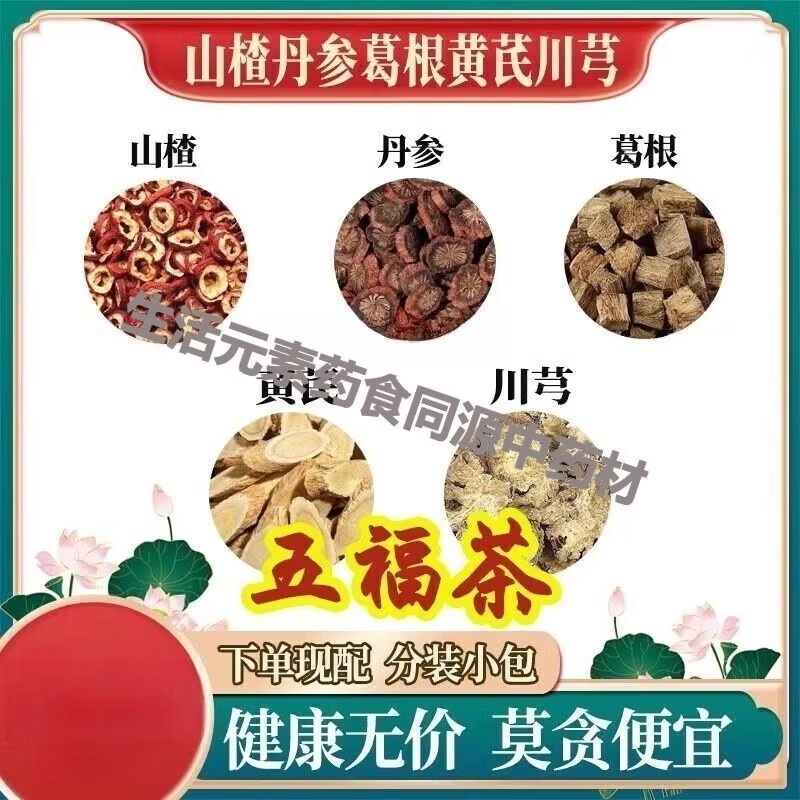 百华源五福茶的功效 五福茶黄芪川芎丹参葛根山楂各3克 五通茶养生 五福茶黄芪川芎丹参葛根山楂 15g*5包