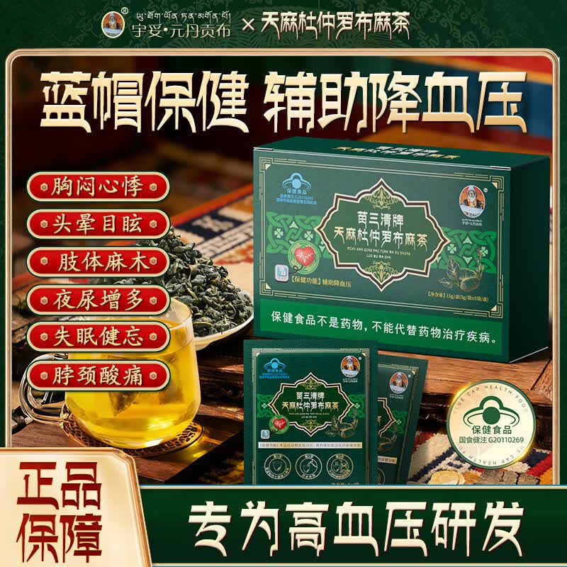 宇妥元丹贡布苗三清牌天麻杜仲罗布麻茶辅助降血压养生茶 3盒强烈建议入手 3g*5袋 [深度调理血压]