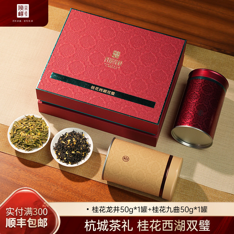 顶峰茶业桂花九曲红梅红茶桂花龙井茶叶西湖双璧100g养生送礼盒