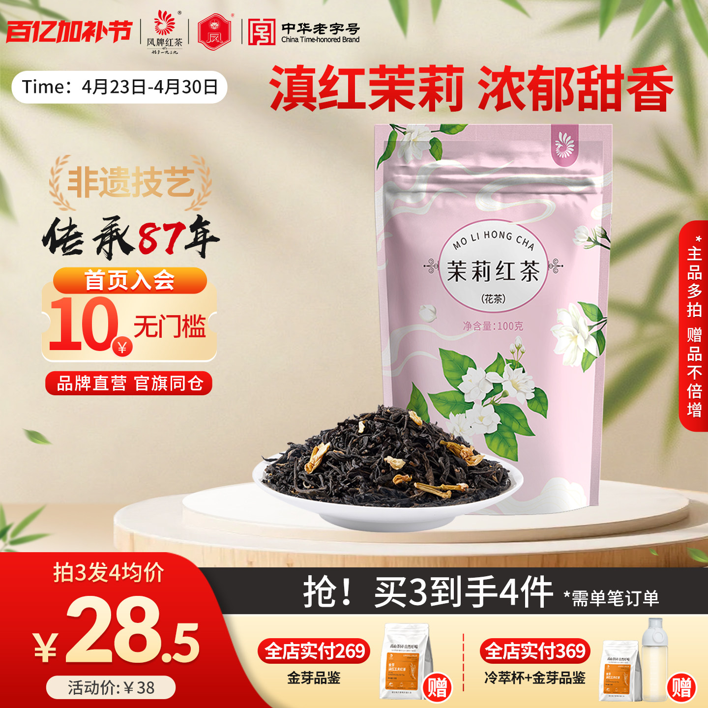凤牌红茶正宗滇红茉莉红茶花香多次窨制云南茶叶浓香红茶100g袋装