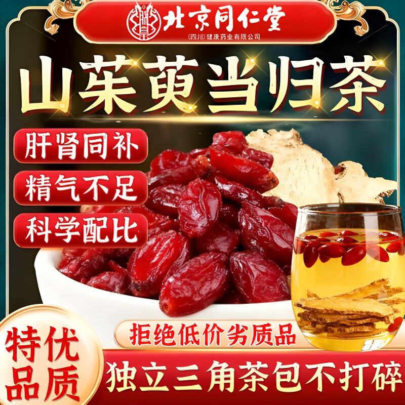 同仁堂山茱萸当归茶包组合中药材煮泡茶水喝肝肾同补精血的功效与作用 升级版【90包540g加强装】山茱萸当归各3克