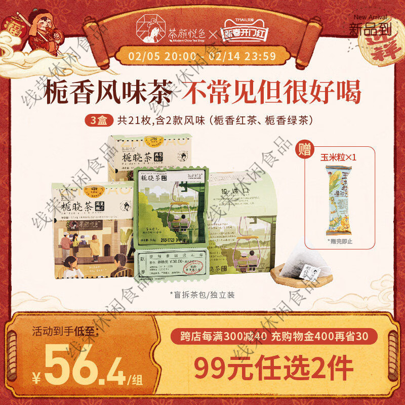 茶颜悦色栀晓茶栀子茶绿茶红茶茶3盒21枚送伴手礼正品保证 栀晓茶*3盒共21枚