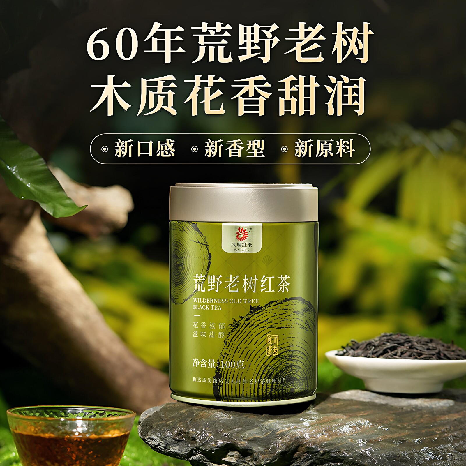 凤牌红茶荒野老树红茶云南凤庆特级花香韵工夫滇红茶罐装100g茶叶