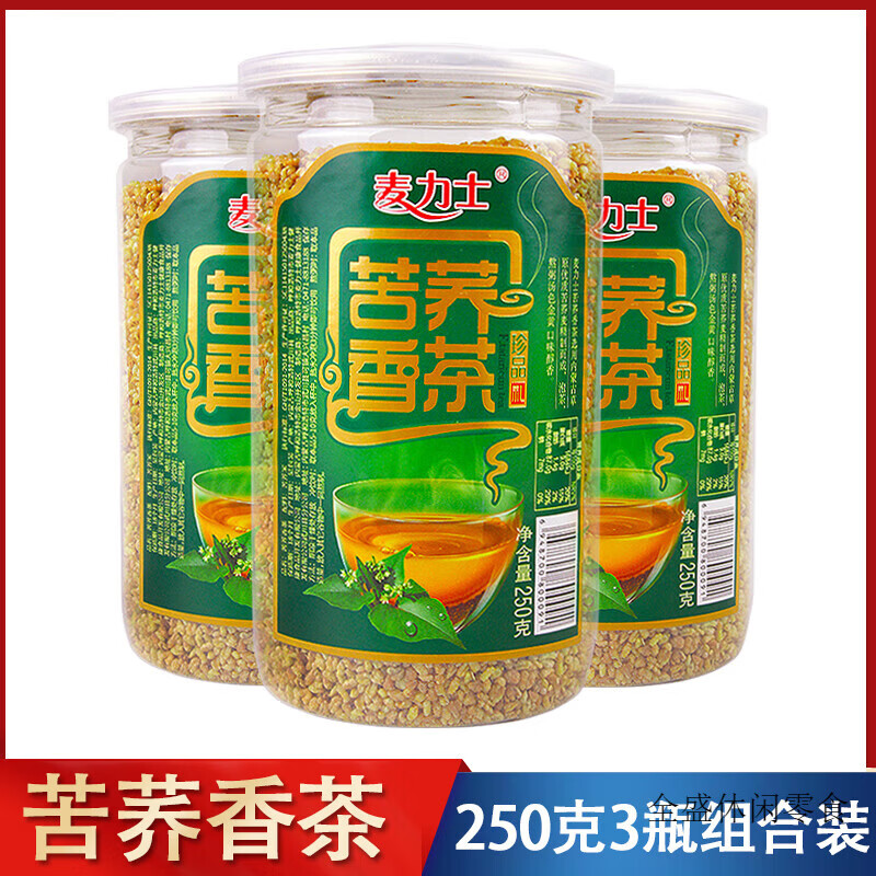 维莱瑞苦荞茶3瓶内蒙古特产苦荞麦茶麦香型招待茶健康饭店茶饮品 【250g麦力士苦荞香茶x3罐】