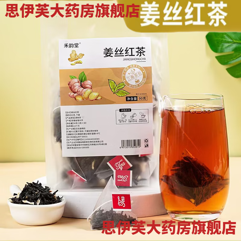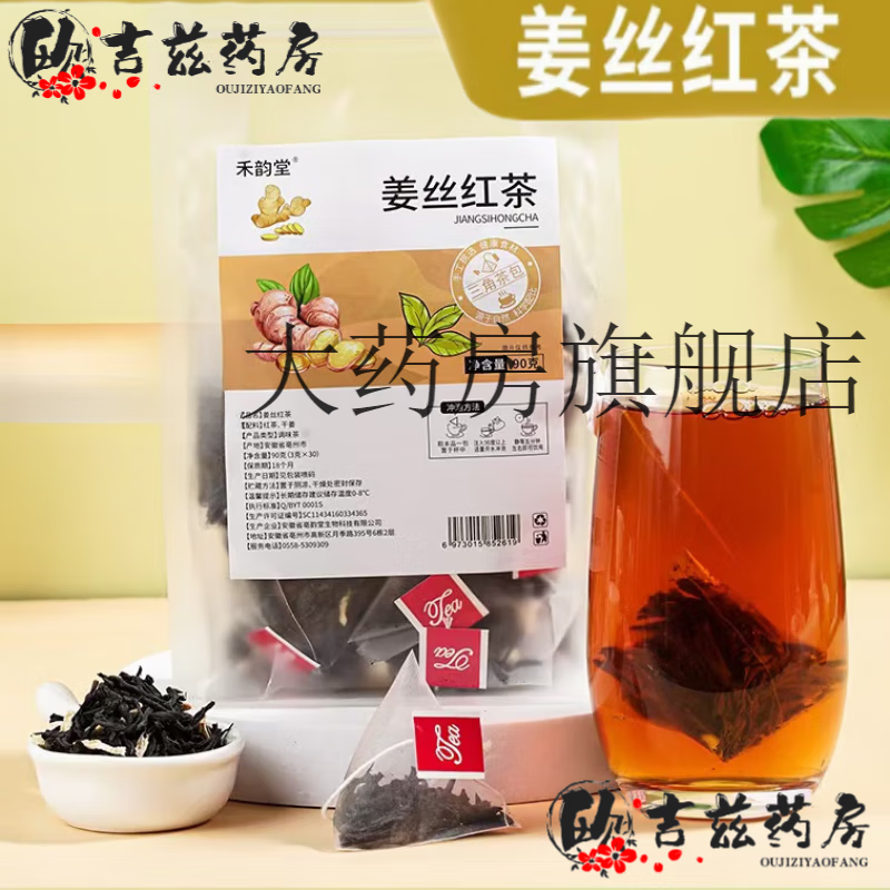 通用药房直售】生姜红茶 姜茶饮组合三角包姜丝红茶男女士养生茶可搭 姜丝红茶90g(3g*30小包【1袋】