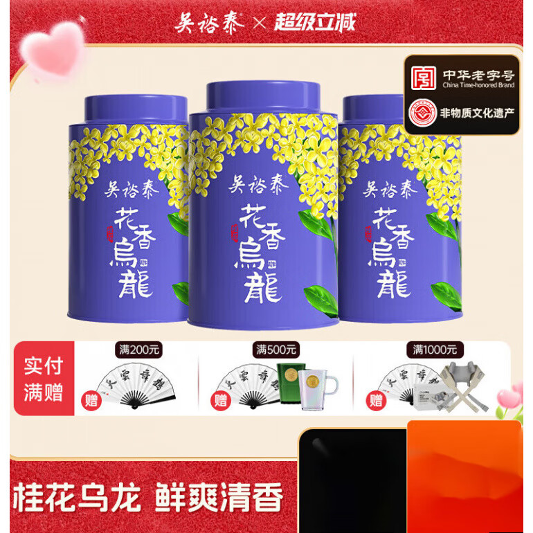 吴裕泰【3罐装】吴裕泰乌龙茶桂花乌龙茶叶非遗窨制工艺60g/罐*3 装共 180g*3罐