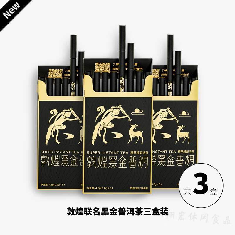酷发新货dudupanda敦煌黑金普洱精粹即溶茶冷萃浓缩茶粉精萃茶盒茶 敦煌联名黑金普洱茶装3盒