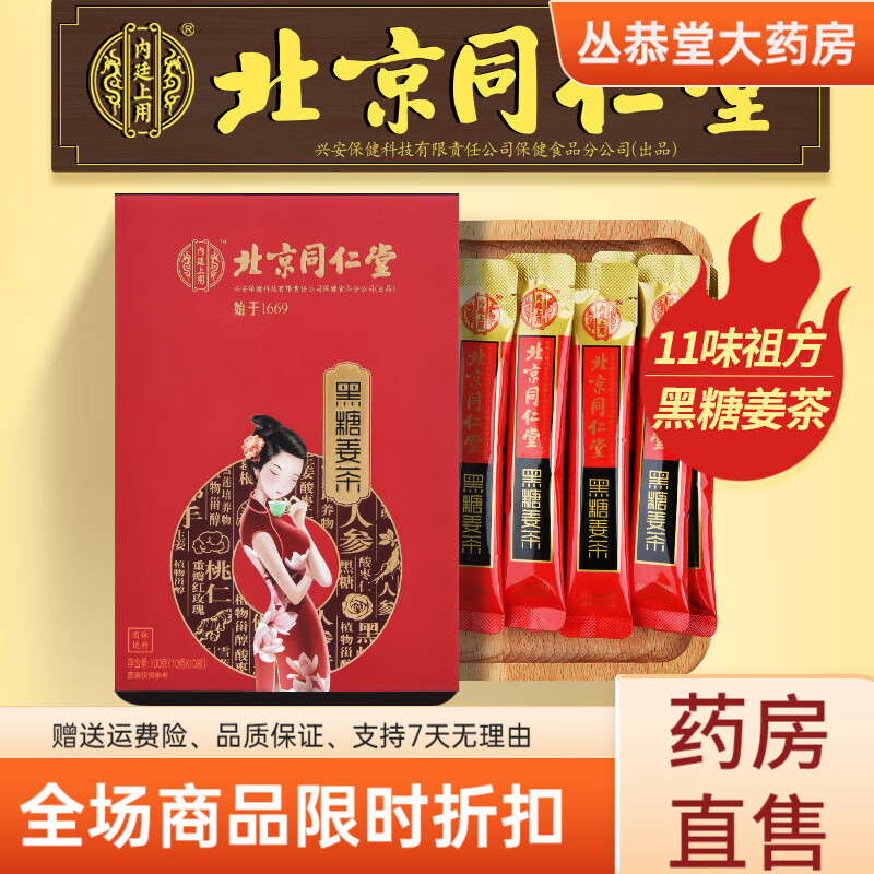 通用北京红糖姜茶黑糖姜枣茶红糖水阿胶红枣桂圆枸杞姜糖片姜丝茶养生 3盒装