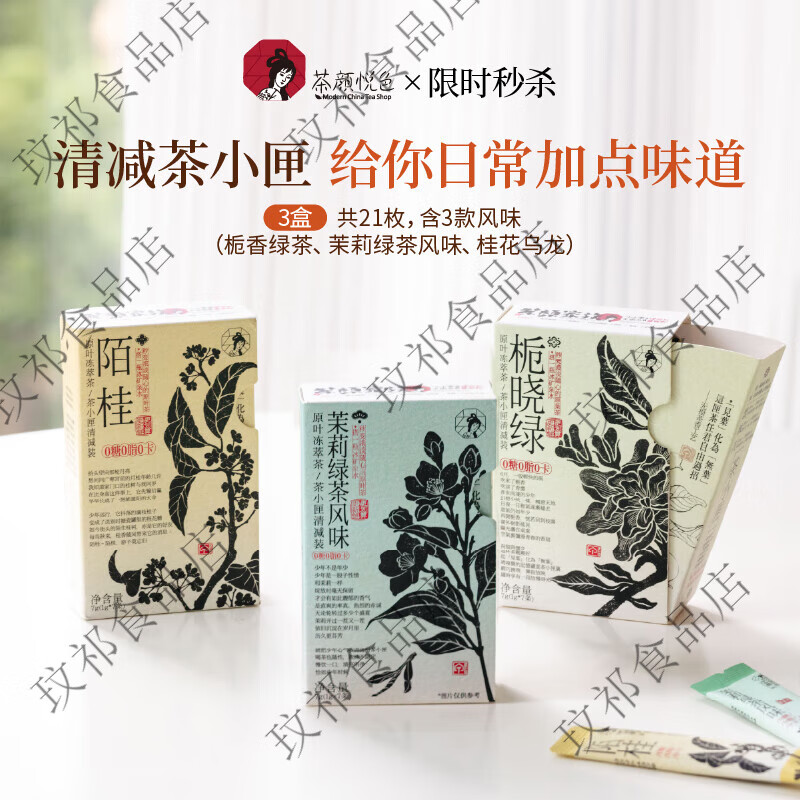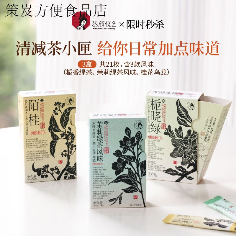 茶颜悦色茶小匣原叶冻萃茶陌桂茉莉绿茶黑乌龙风味茶粉条3盒21条 栀香绿茶+茉莉绿茶+陌桂