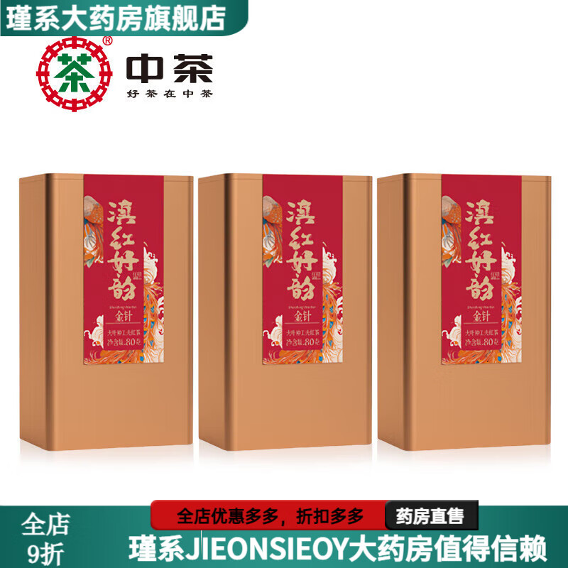 中茶滇红红茶松针金针80g灌装大叶种工夫红茶茶叶灌装口粮160g 中茶滇红松针 240g(3罐)