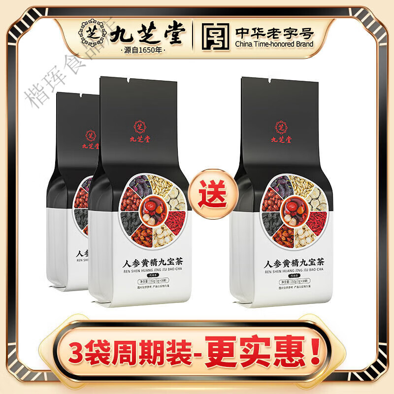 九芝堂人参九宝茶150g搭玛咖黄精桑葚枸杞茶滋补茶男人养生茶 九芝堂官方3袋周期装实A