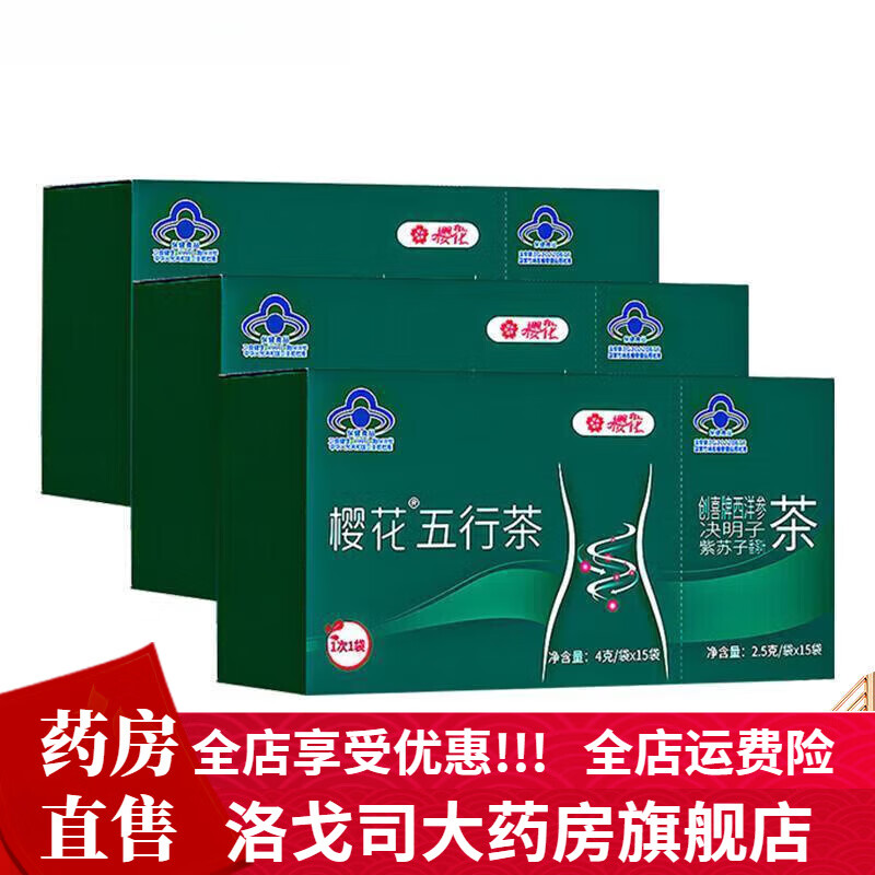 樱花牌(SAKURA)樱花五行茶30袋加强版通I便茶润I肠通I便茶樱花茶通I便 3盒绿色五行茶