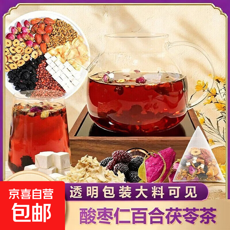 工厂直发 酸枣仁百合茯苓茶男女中老年睡眠差好梦好觉养生茶 酸枣仁百合茯苓茶 30包 * 3袋 【安神舒缓】