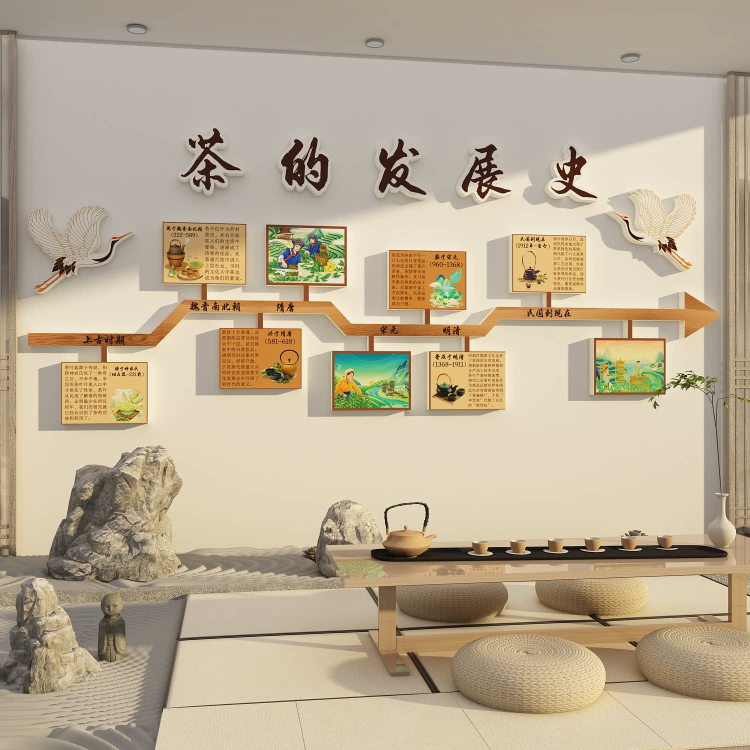 茶室氛围布置茶叶店背景墙装饰画网红文化贴画茶馆的发展史高级感