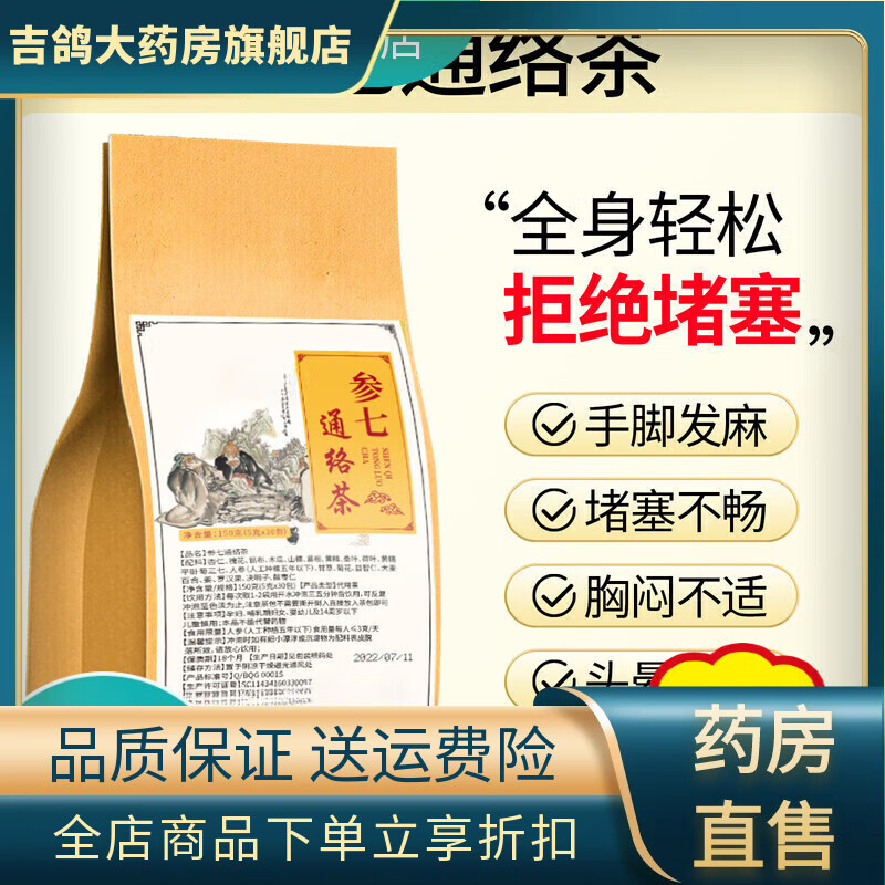 通用血管堵塞疏通茶参七通络茶中老年心脑血脉清道夫软化疏通养生茶 买5+3发240小袋【超.实惠.】