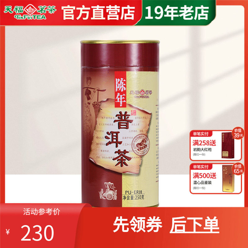 天福茗茶 陈年普洱茶 普洱熟茶 云南纯芽料 茶叶罐装250g半斤装
