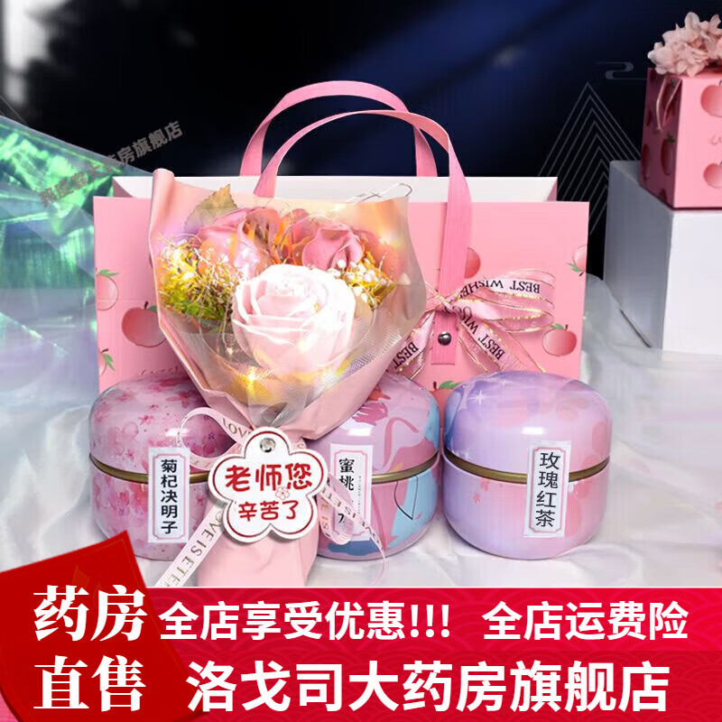 通用润喉茶教师教师节礼物实用贈老师幼儿园伴手礼花茶感恩礼品女小花 3罐茶+1束花(蜜桃/玫瑰/菊杞) 老师您辛苦了