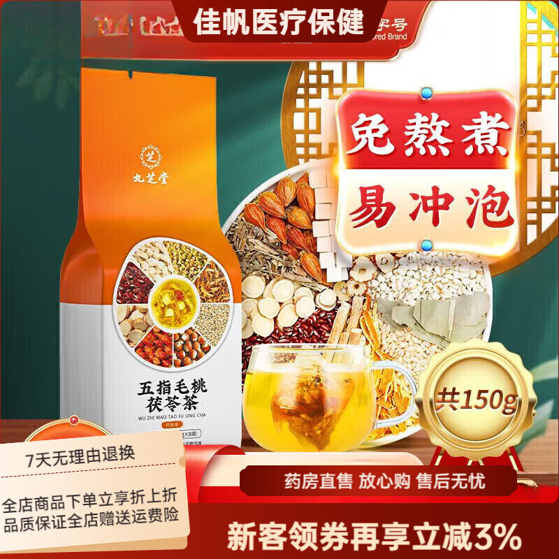 九芝堂【京健康】五指毛桃茯苓茶30袋赤小豆薏苡仁芡实搭脾胃去si气茶 发周期装共 3袋*90袋