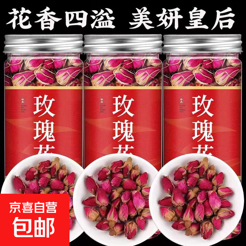 玫瑰花中药材玫瑰花洛神花组合茶滋补养生正品无硫玫瑰花养生茶 平阴玫瑰花含罐 150g*3罐