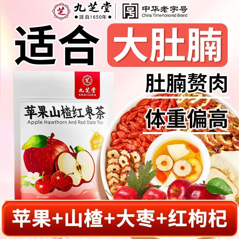 九芝堂苹果山楂茶120g刮油解腻红枣陈皮纯天然苹果干养生茶 3包*360g【54袋】体重过百喝 身体 1支*1罐