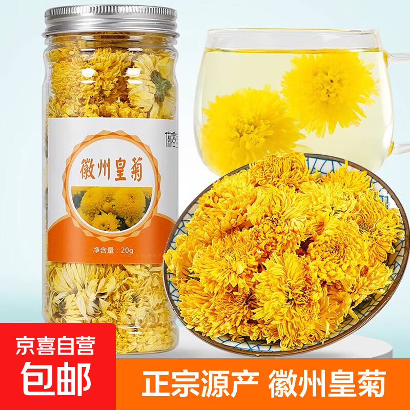 徽州皇菊大菊花茶一朵一杯花茶 茶叶黄菊金丝贡菊胎菊 3罐60g