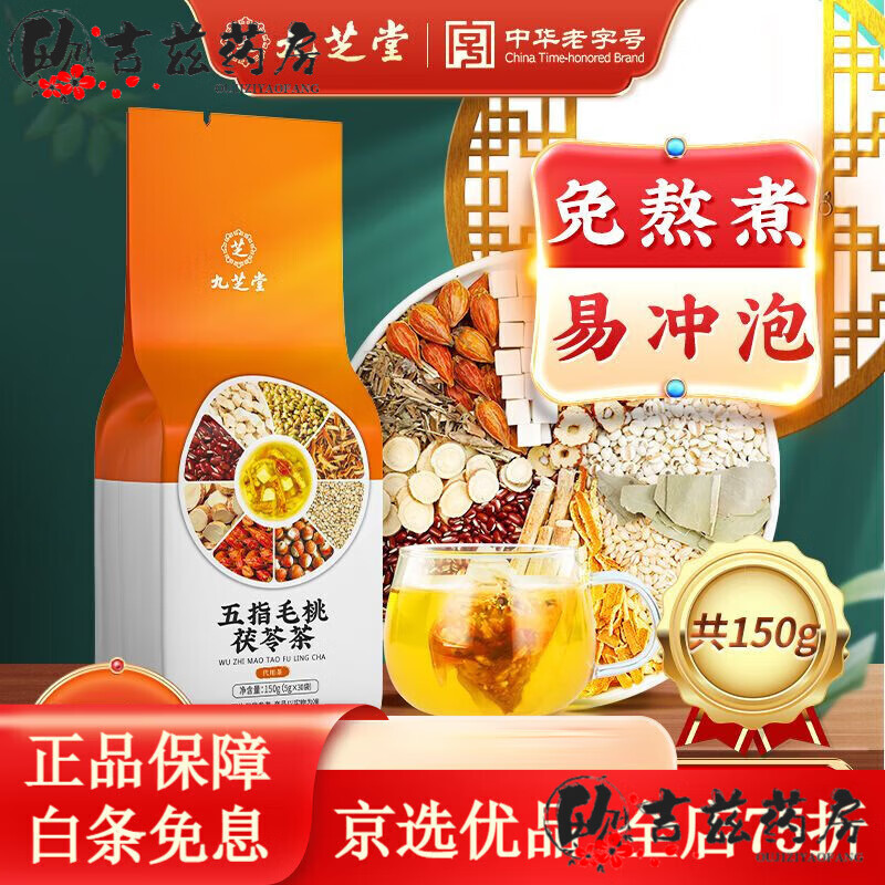 九芝堂【京健康】五指毛桃茯苓茶30袋赤小豆薏苡仁芡实搭脾胃去si气茶 发3袋周期装共90袋 九芝堂 认准百年