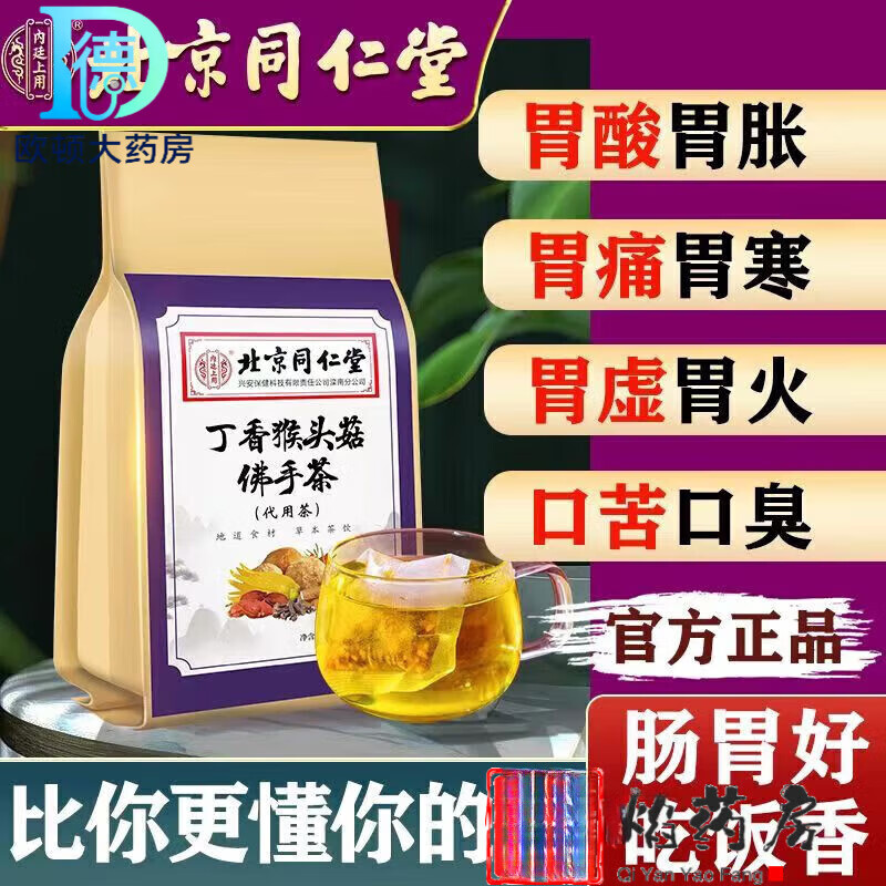 北京同仁堂丁香猴头菇佛手茶健胃疼痛胀气胃寒反酸养生茶养i胃幽门i螺旋杆菌 赠北同丁香猴头菇佛手茶【新款盒装】贈 买2贈1实發3包
