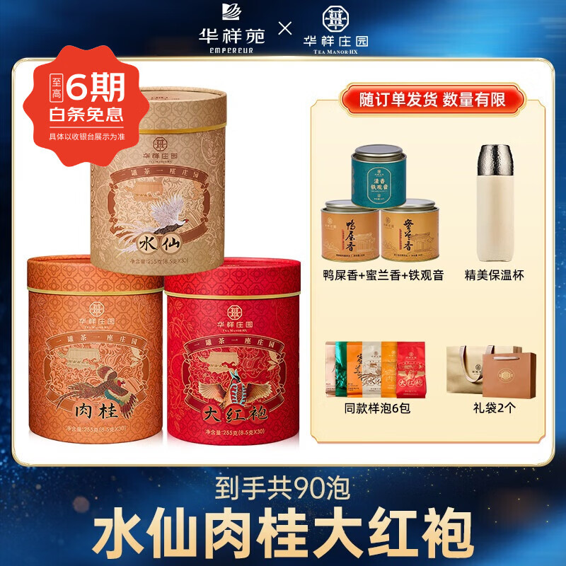 华祥庄园水仙肉桂大红袍组合乌龙茶叶武夷岩茶自饮罐装 【热销】水仙肉桂大红袍3罐组合 共90包