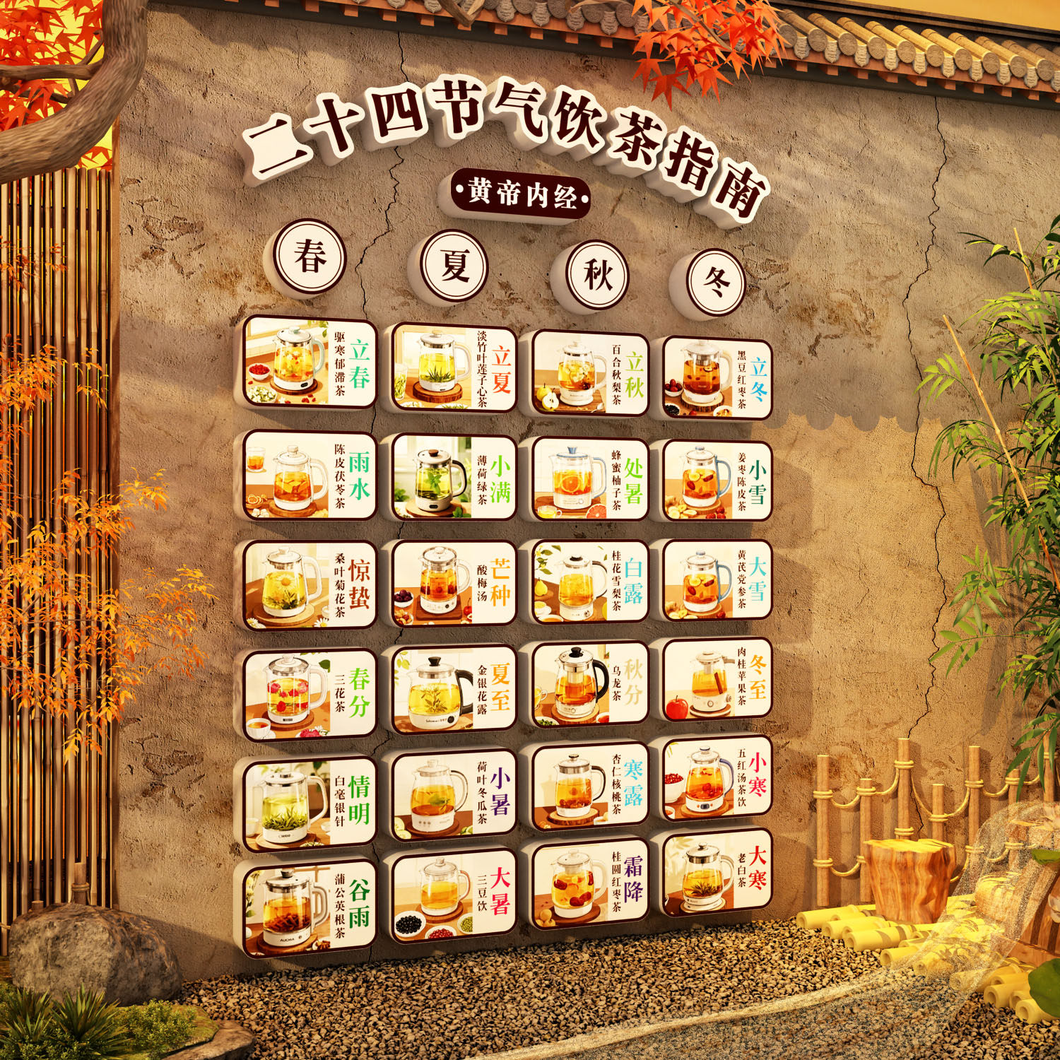 24二十四节气文化墙面茶叶饮室图主题养生馆装饰挂画中医氛围布置