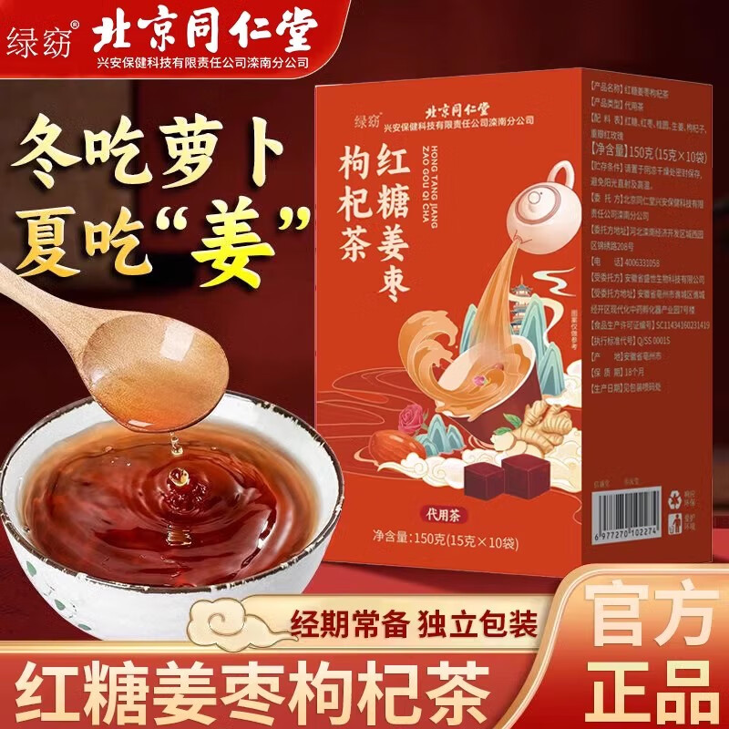 北京同仁堂优选三伏天姜枣茶夏季非暖胃去湿去寒红枣姜茶 红糖姜枣枸杞茶(3盒正式调养装) 京官方店东自旗舰營
