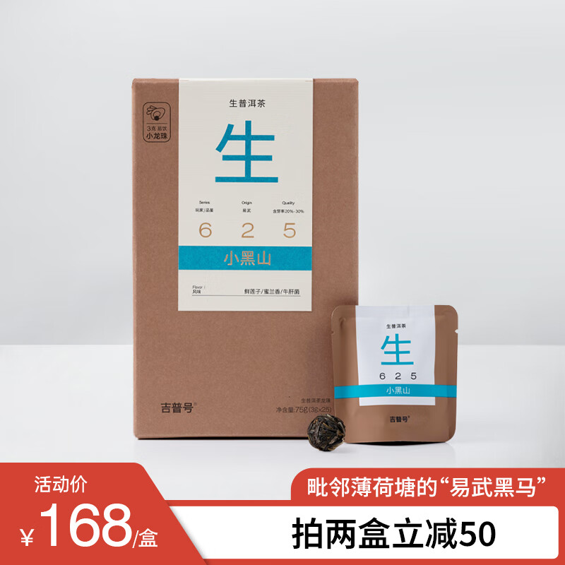 吉普号625小黑山 易武普洱生茶龙珠 蜜兰香型 易武山头茶 古树头春 茶叶 1盒75g(3g*25粒)