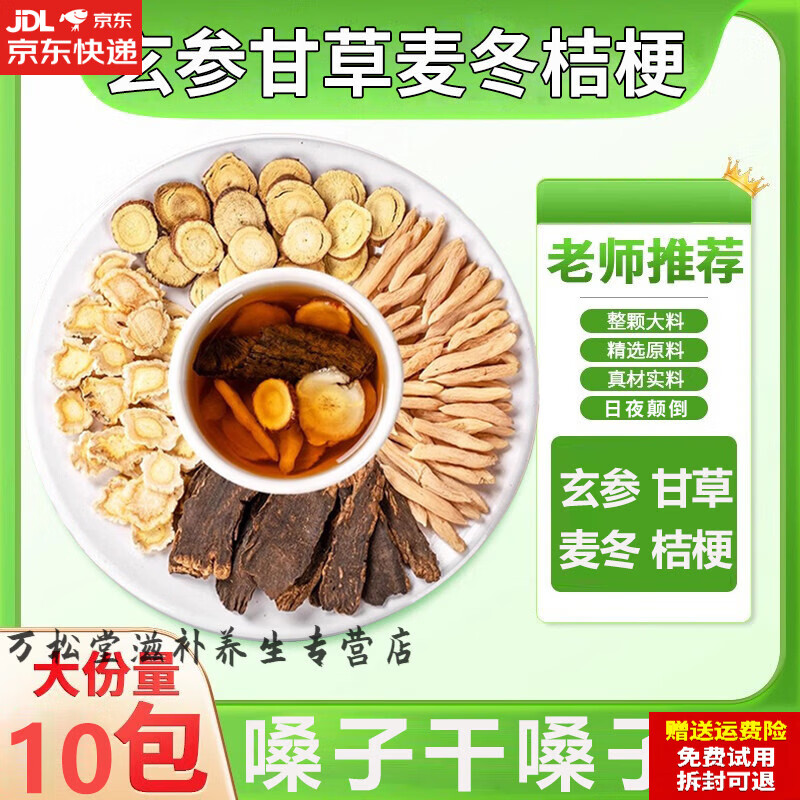 南京同仁堂原料玄参麦冬桔梗生甘草各3克g中药材生元参玄麦甘桔汤嗓子柑橘茶 【泡水款*10包】玄参甘草麦冬桔梗