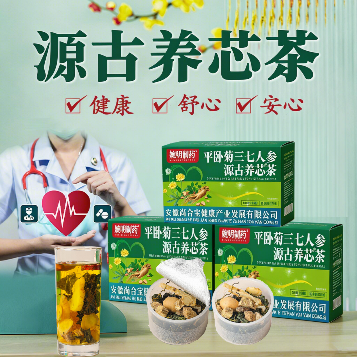 平卧菊三七人参养心茶护心茶不是胸闷气短心慌心悸药独立小罐装 100g*3盒 共【30小罐】周期装