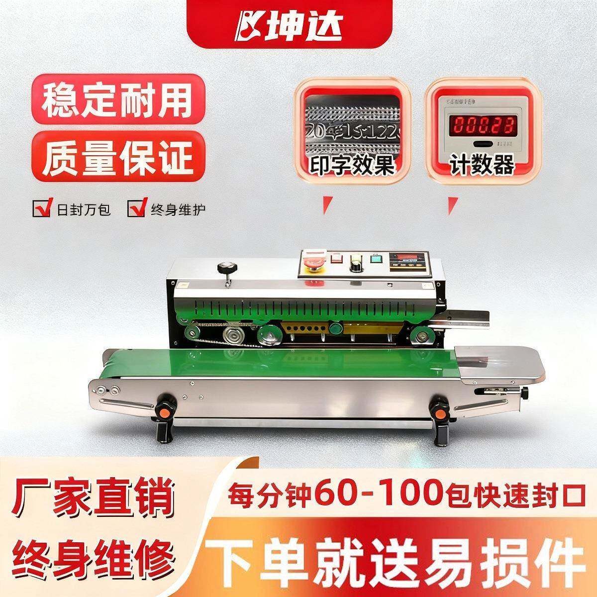 全自动封口机商用连续小型茶叶槟榔糖果铝箔饼干月饼fr900包装机