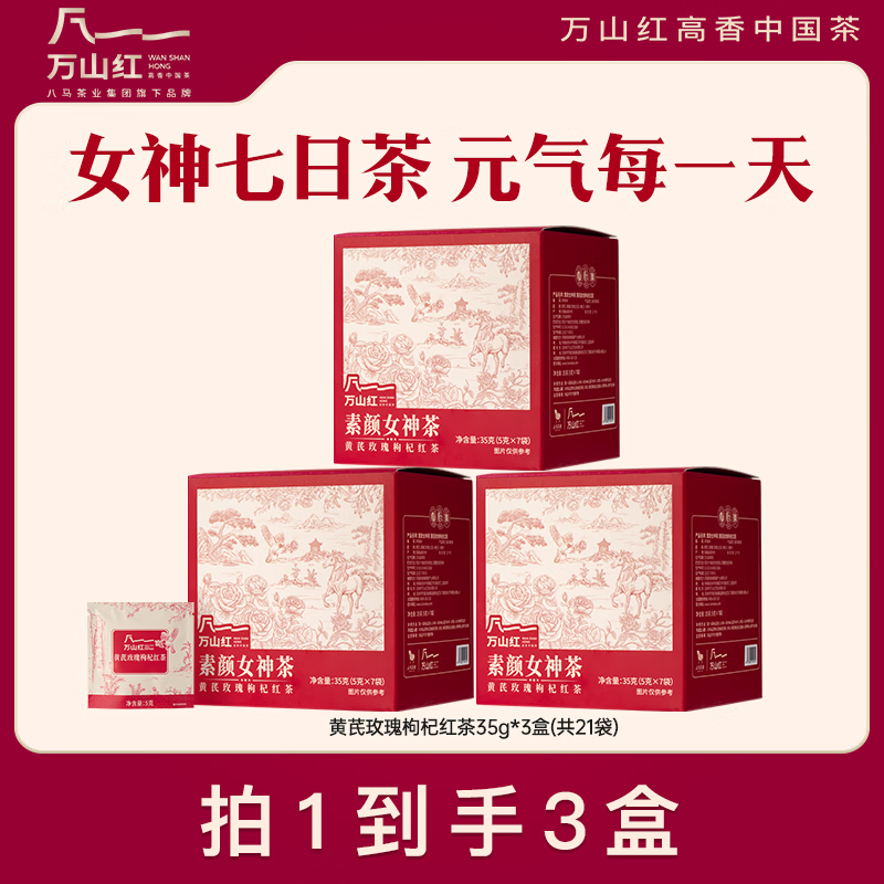 八马茶叶万山红素颜女神茶人参红枣枸杞黄芪玫瑰红茶自己喝的袋泡茶叶 3盒黄芪玫瑰枸杞红茶35g*3
