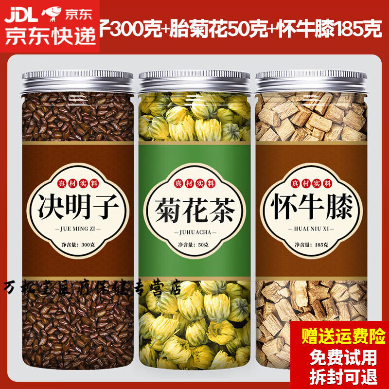 南京同仁堂决明子菊花怀牛膝茶中药材新货正品官方野生特级泡水喝泡茶专用 【3罐】决明子+胎菊花+怀牛膝 3瓶*1组