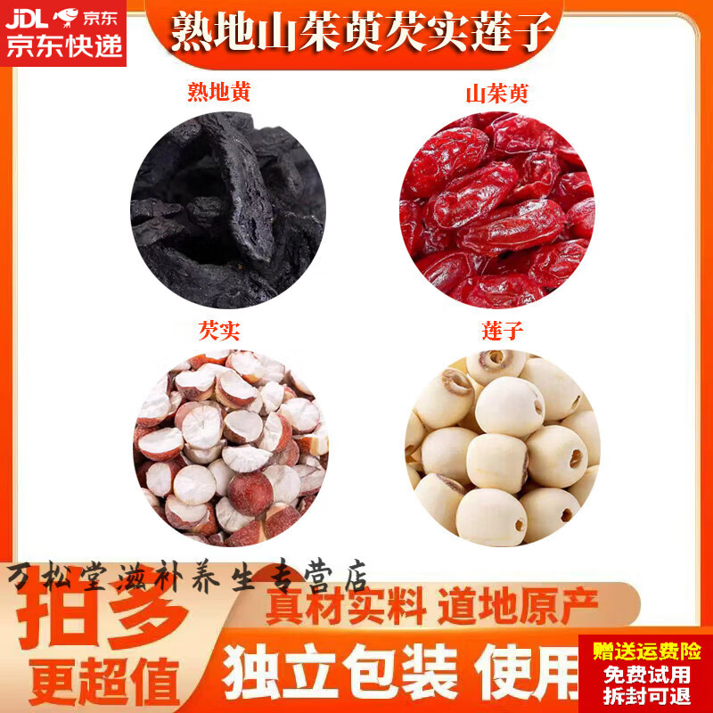 南京同仁堂原料熟地山茱萸芡实莲子养生组合茶包正品药包原料干货泡水煮水泡 【28包周期】熟地3g+山茱萸3g+芡实3g+莲子