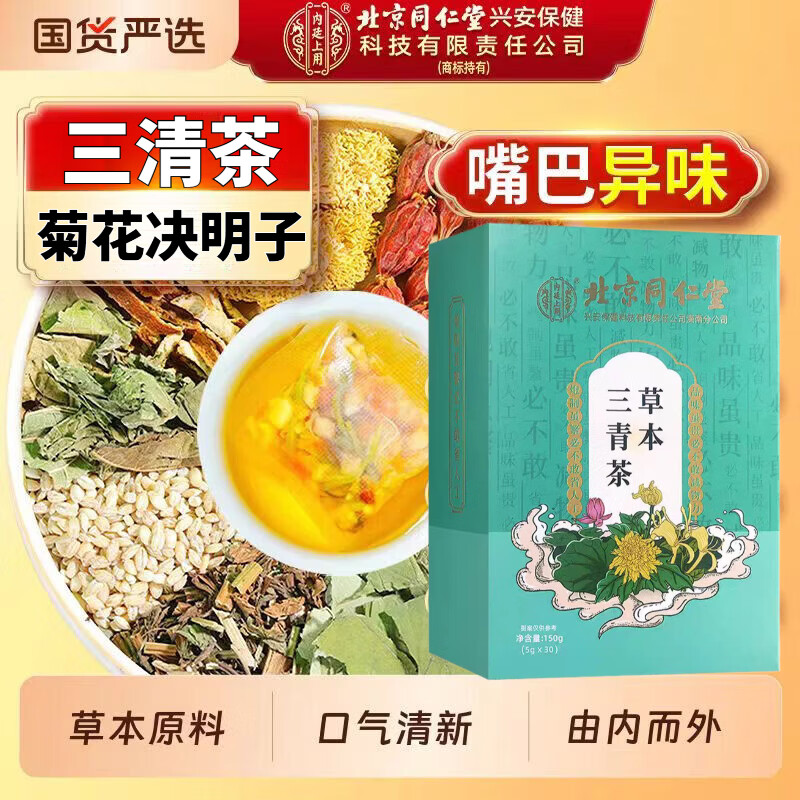 北京同仁堂草本三清茶清新淡口气口苦口臭上火茶三清茶甘草菊花决明子大麦茶 3盒共90小包 30包*3盒