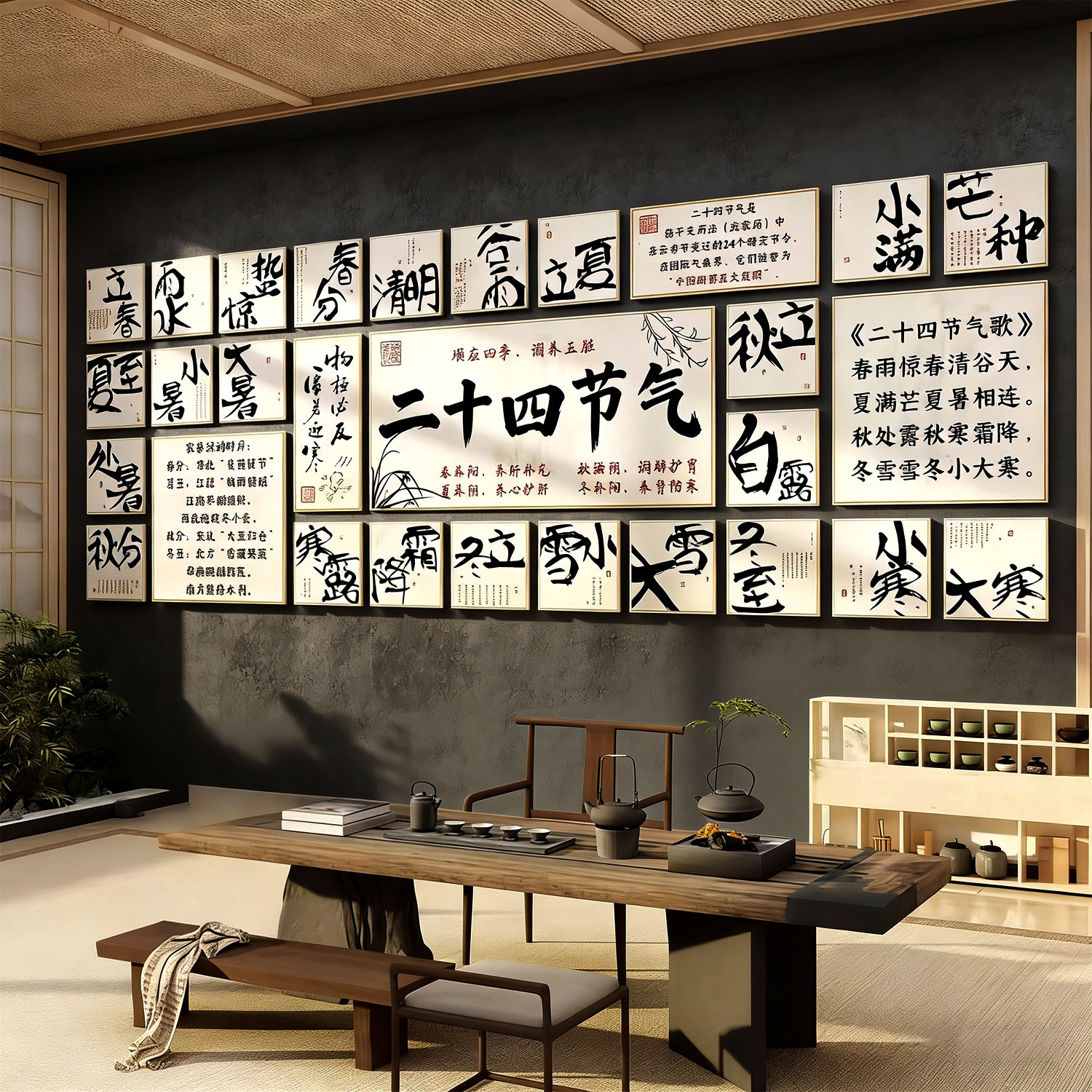 二十四24节气茶室氛围布置馆背景文化墙面装饰画茶叶店古风高级感
