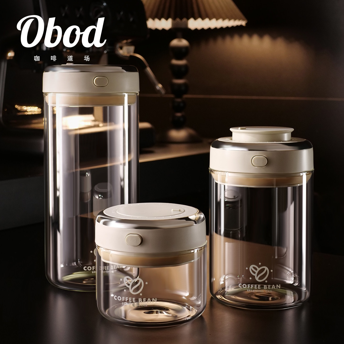 Obod咖啡豆密封罐单向排气储豆罐高硼硅玻璃咖啡储存罐奶粉茶叶罐