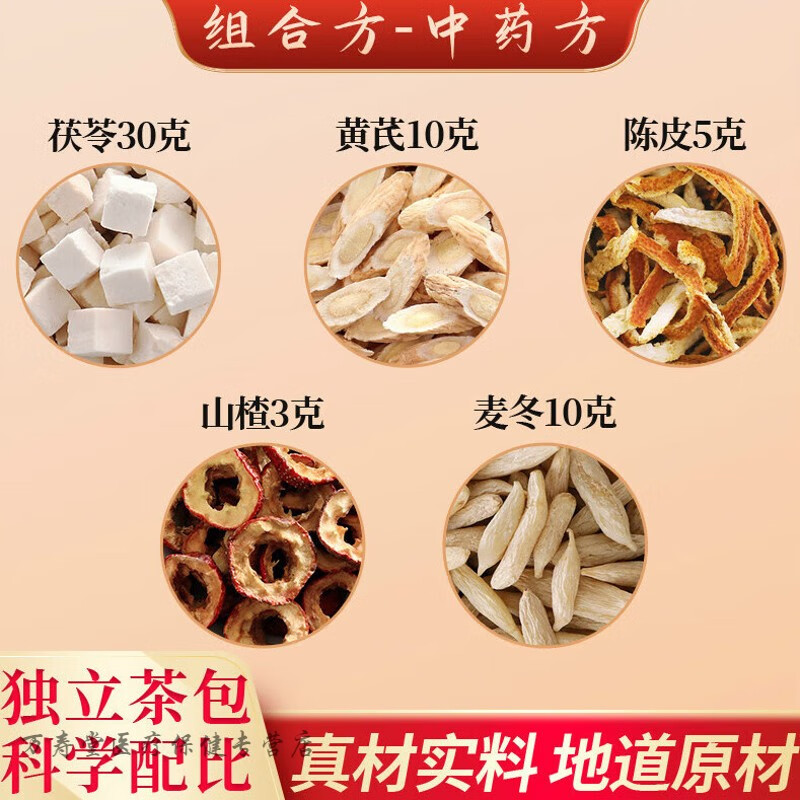 南京同仁堂原料茯苓黄芪陈皮山楂麦冬生姜中药材组合茶包泡水泡茶陈皮茯苓茶 【10副】茯苓30黄芪10陈皮5山楂3麦冬10