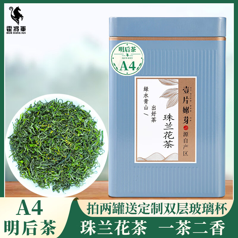 霍将军珠兰花茶A3A4罐装安徽黄山歙县珠兰花香春茶手工50克绿茶叶自己喝 A4明后茶250克罐装【新品尝鲜】
