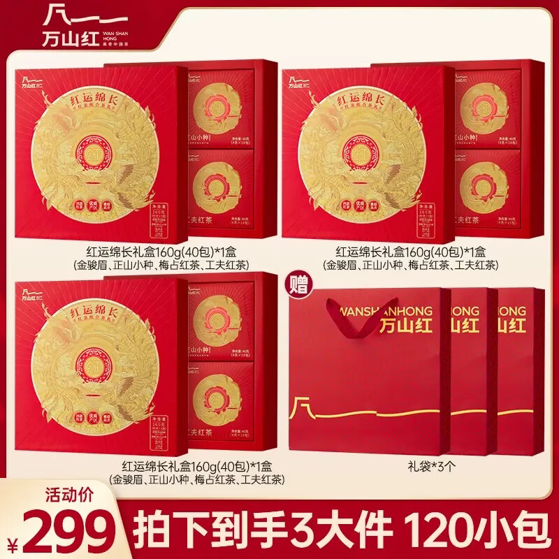 万山红特级金骏眉正山小种茶叶红茶组合装红运绵长礼盒装送礼送人 160g3盒
