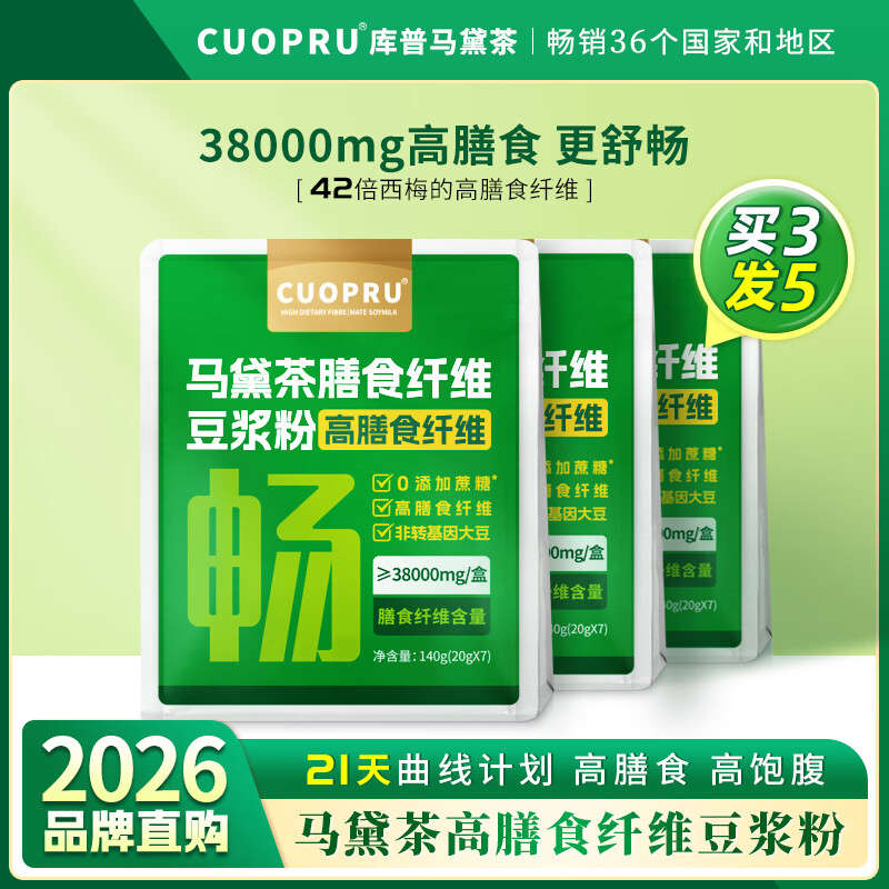 CUOPRU库普马黛茶高膳食纤维豆浆粉独立包装0添加蔗糖豆浆粉商用早代餐 马黛茶豆浆粉【21天曲线计划-买3发5】