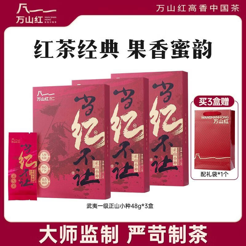 八马茶叶[万山红] 武夷原产红茶金骏眉/正山小种 茶叶轻礼盒 中秋礼礼袋 武夷正山小种国潮礼盒48g*3盒【礼袋】