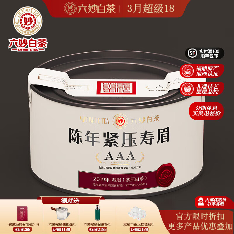 六妙白茶3A陈年一级紧压寿眉福鼎白茶窖藏2019年茶叶罐装 50g*1罐