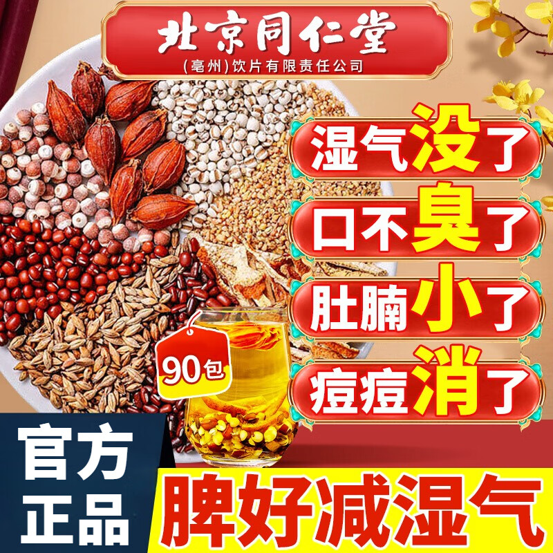 北京同仁堂红豆薏米茶赤小豆薏仁茯苓橘皮薏米茶可祛身湿茶去气毒湿气毒去气毒湿重茶健毒脾排热湿产品养生茶 3盒装90包450克 湿气重的选择