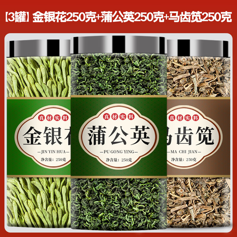 吾家余堂金银花蒲公英马齿苋汤组合中药材煮水泡水喝养生茶代茶饮真材实料 【消肿】【大罐】【3罐】金银花+蒲公英+马齿苋(各