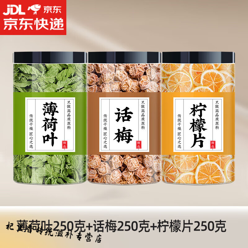 南京同仁堂薄荷话梅冰柠青柠茶冷泡立秋养生茶润燥水适合女士泡水喝的养生茶 【3罐】薄荷叶250g+话梅250g+柠檬250g